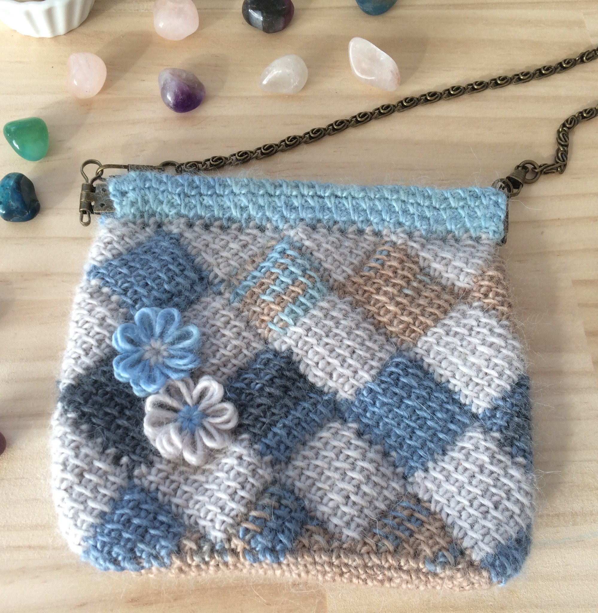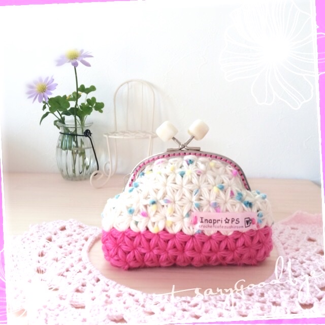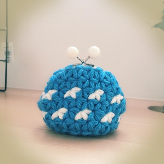 - ブロックアフガン編みのパクパクポーチ