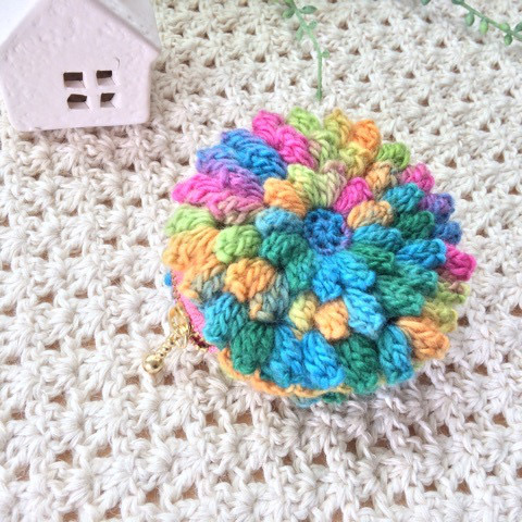 - パプコーン編みのポーチ