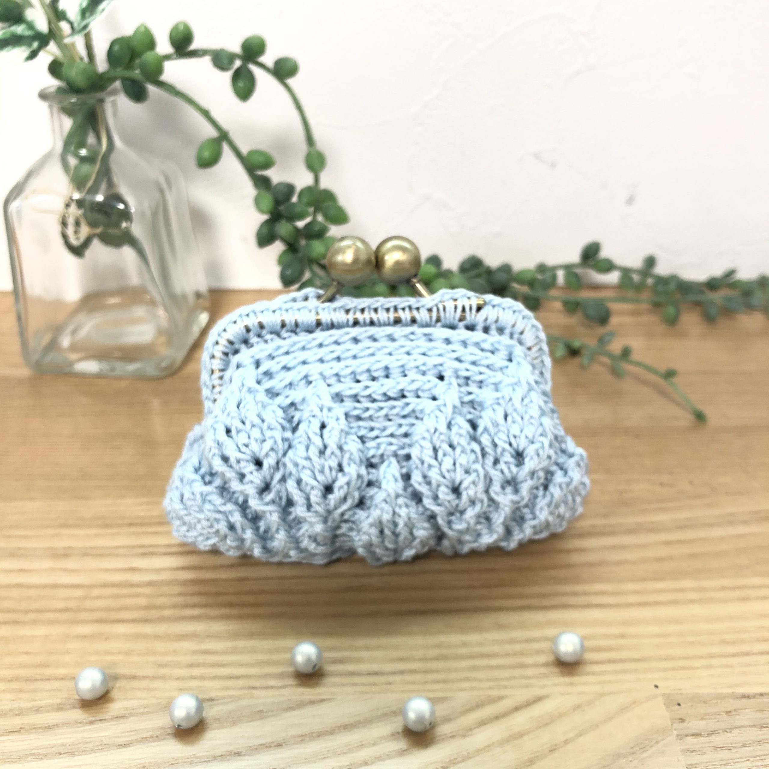 - リフ編みのがま口