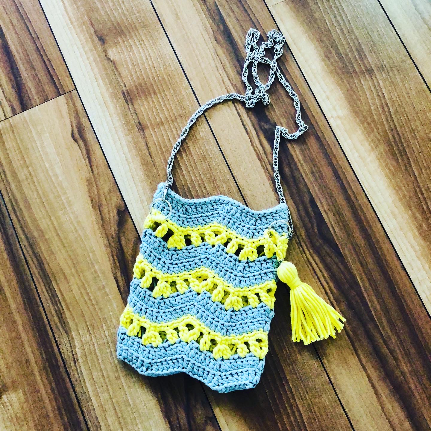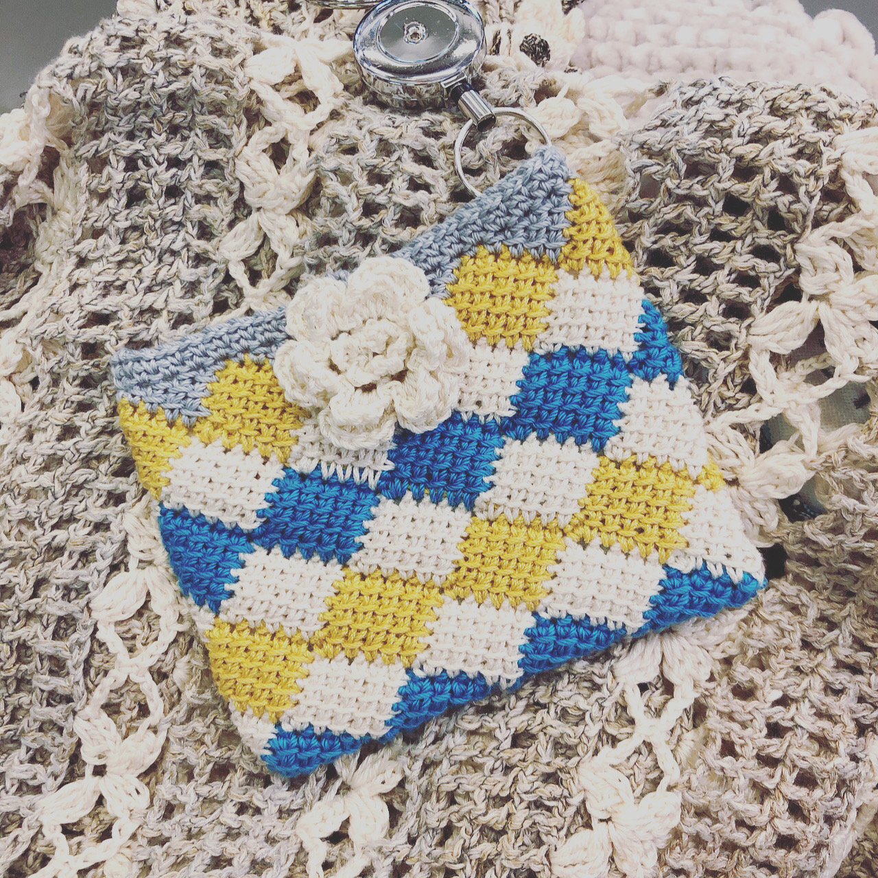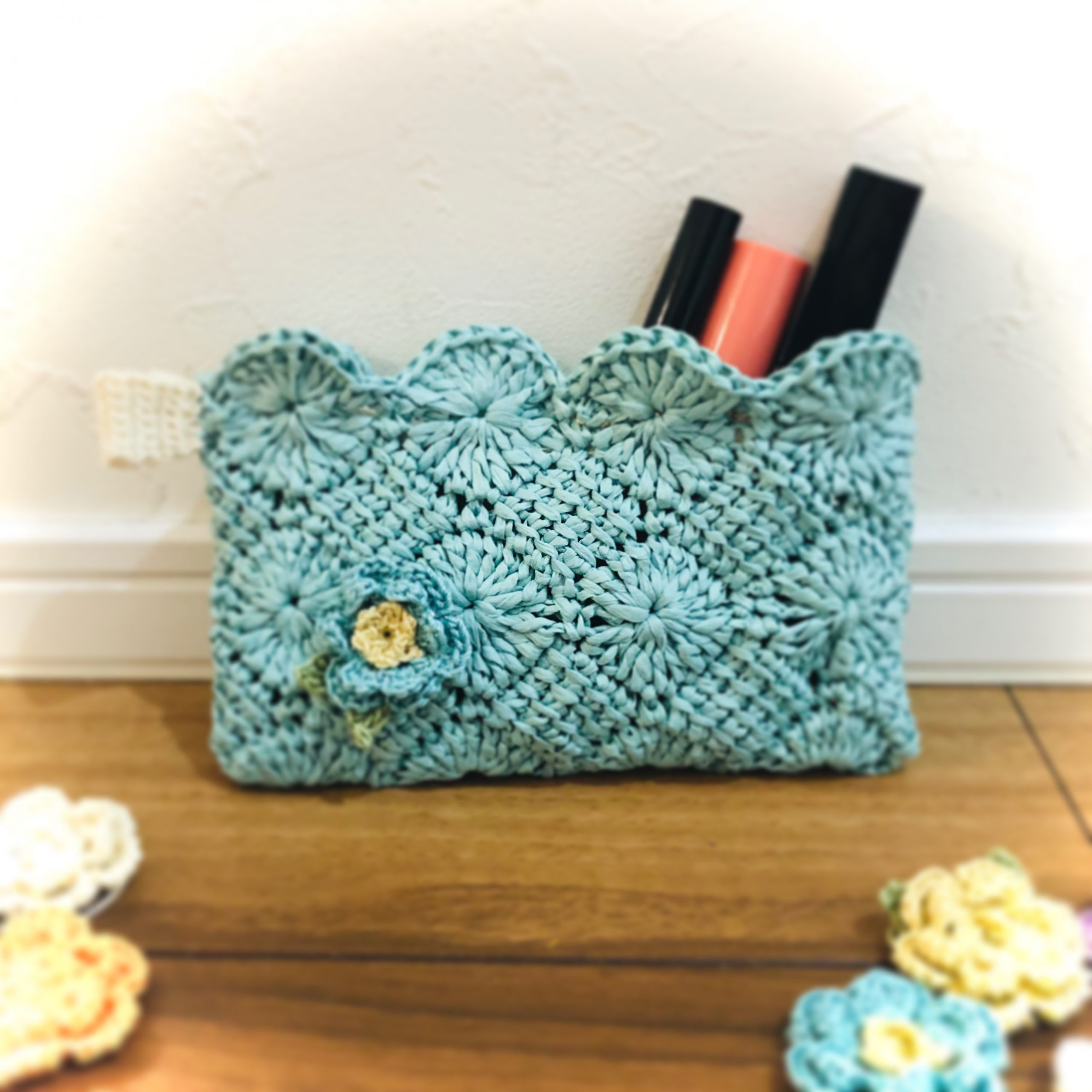 - フラワーアフガン編みのポーチ